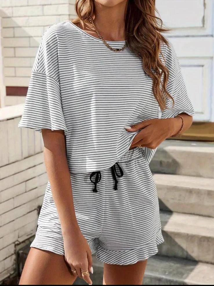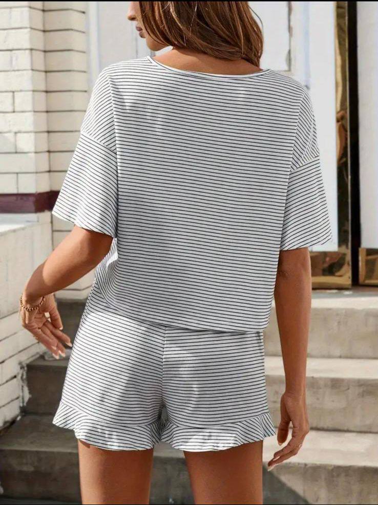 “Kısa Kollu Bisiklet Yaka Çizgili Bluz Üst, Beli Lastikli Şort Alt Turlu Viskon İkili Takım” için yorum yapan ilk kişi siz olun Cevabı iptal et